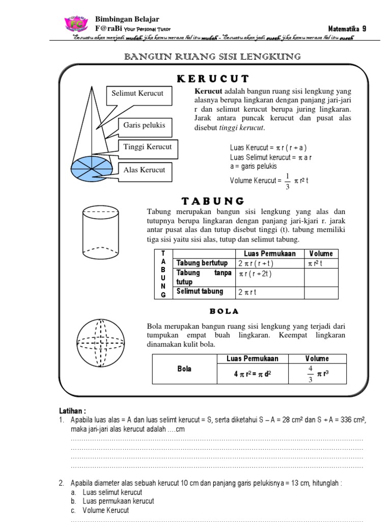 Kd 2 1 Mengidentifikasi Unsur Unsur Tabung Kerucut Dan Bola Matematika
