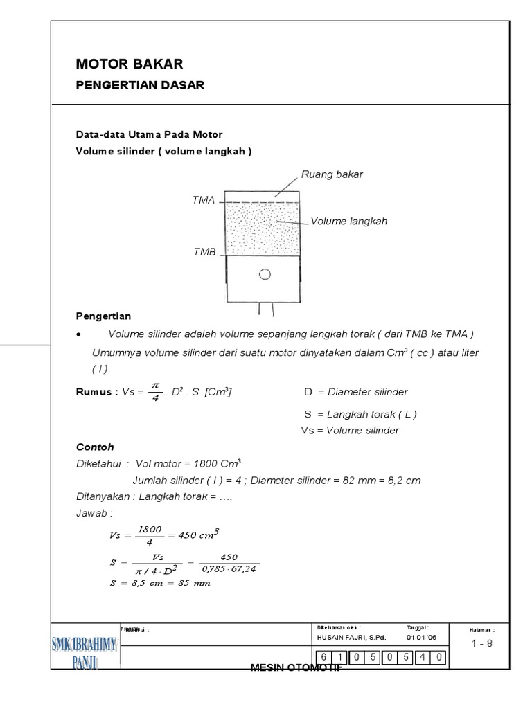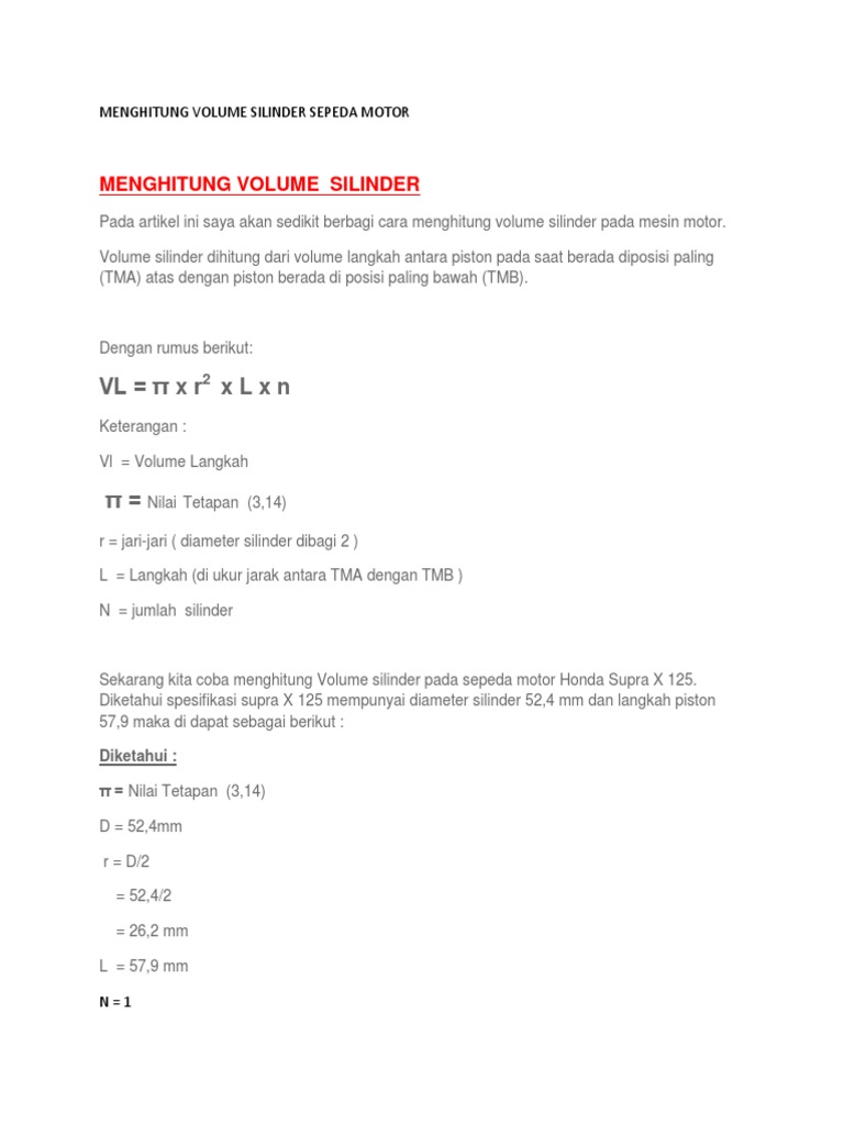 Cara Menghitung Perbandingan Kompresi Dan Volume Silinder Langkah Piston Bisa Otomotif