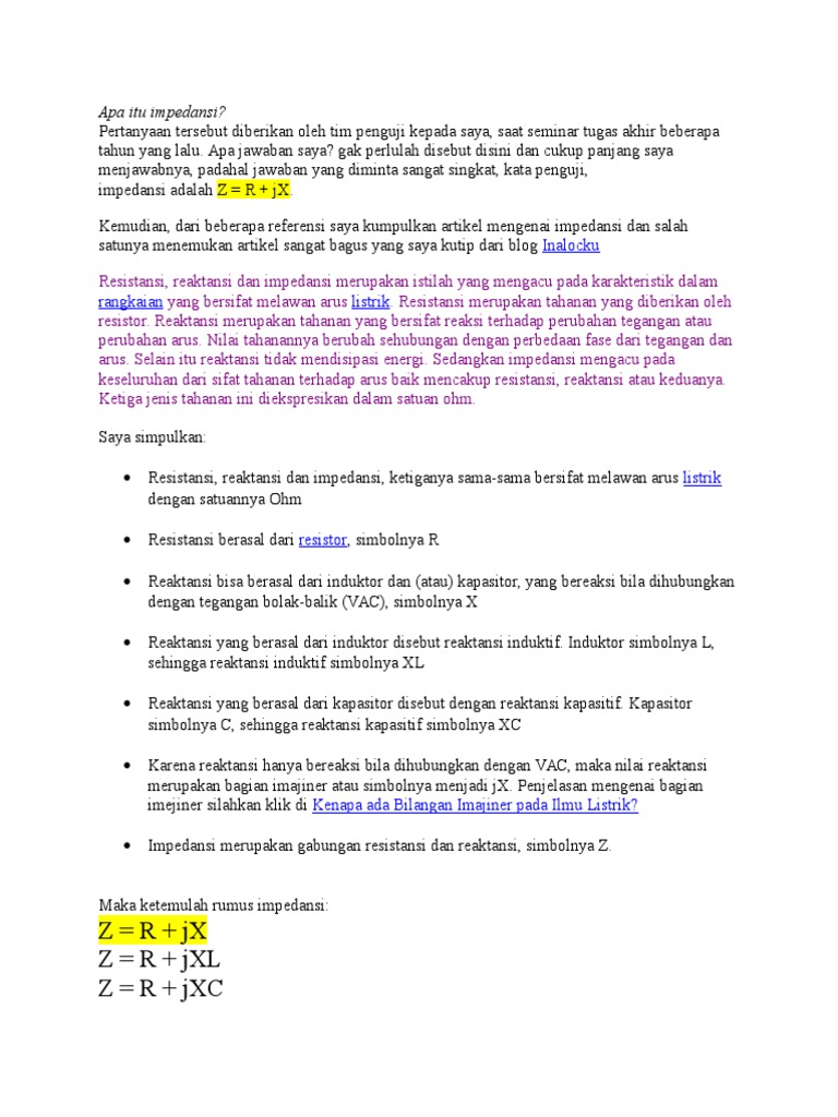 Pengertian Impedansi Listrik Electrical Impedance Teknik Elektronika