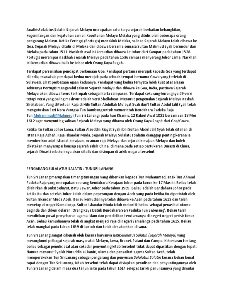 Sulalatus Salatin Sejarah Melayu Merupakan Satu Karya Sejarah Berkaitan Kebangkitan
