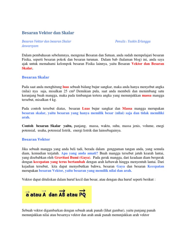 Vektor Blog Besaran Fisis Skalar Vektor Besaran Skalar Besaran Yang Cukup Dinyatakan Oleh Besarnya Saja Besar Dinyatakan Oleh Bilangan Dan Satuan Pdf Document