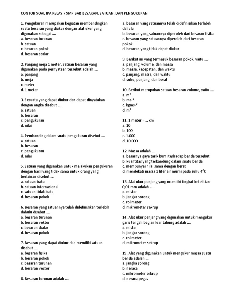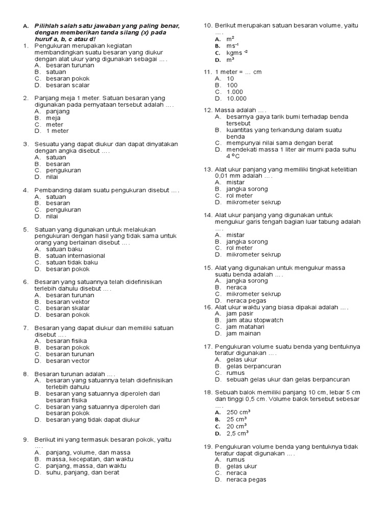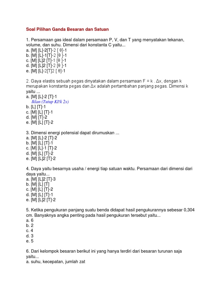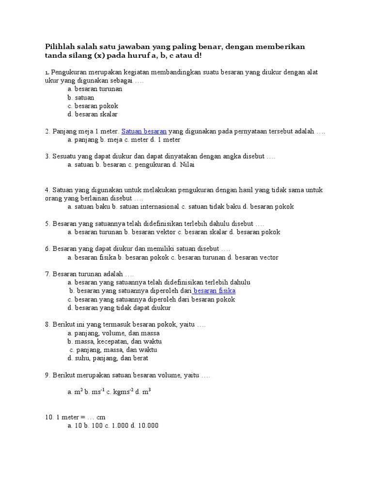 Besaran Pokok Besaran Turunan Satuan Internasional Soal Dan Jawaban Un 2013 Gurumuda Net