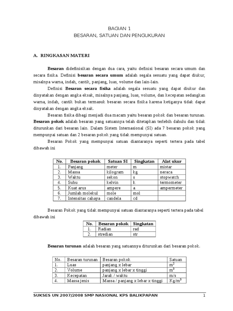 Rangkuman Pelajaran Dan Soal Sd Smp Sma Ipa Smp Kelas 7 Besaran Pokok Dan Besaran Turunan