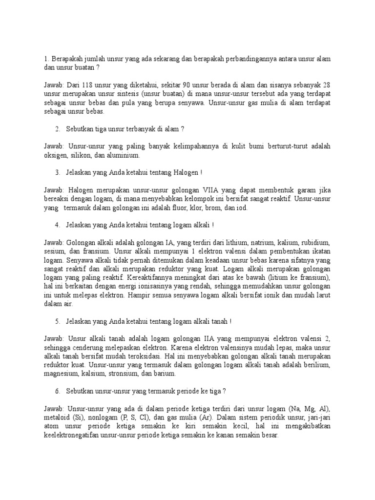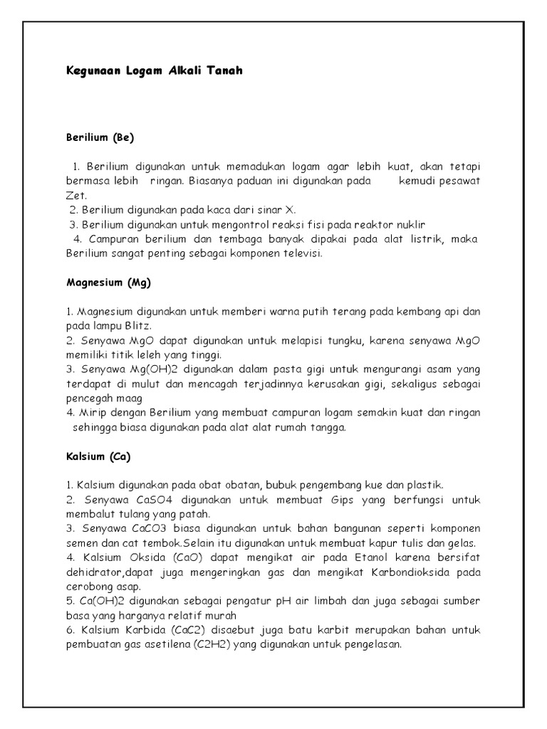 Logam Alkali Dan Alkali Tanah Unsur Sifat Sifat Contoh Soal