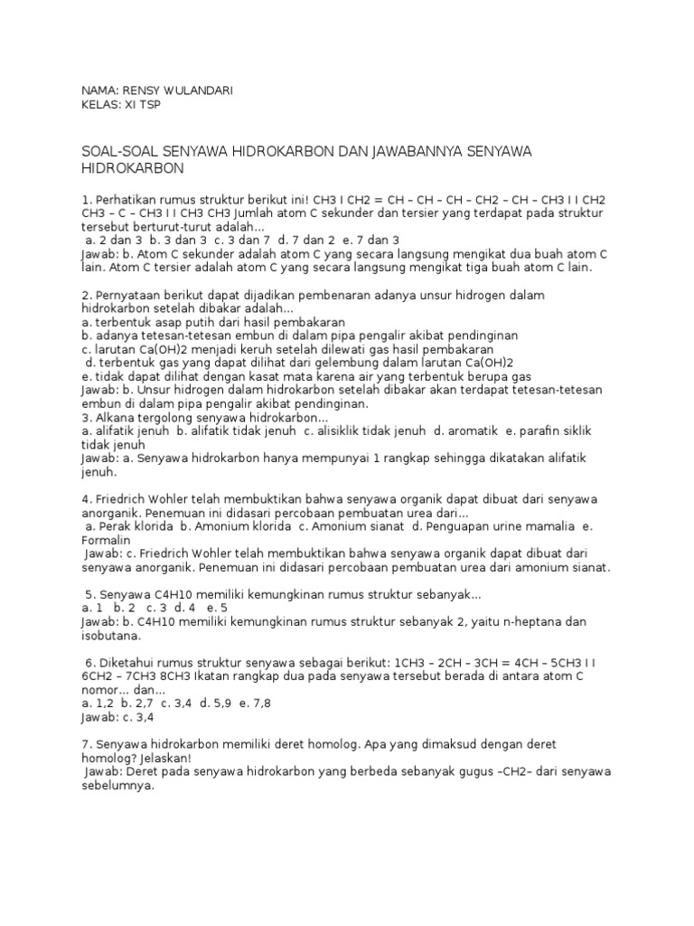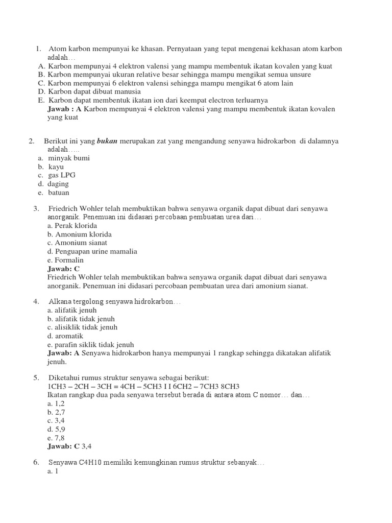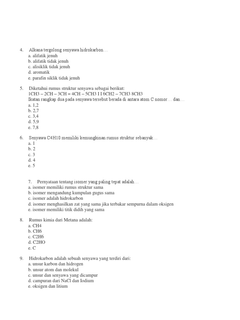 Soal Uas Kelas 11 Fix Docx 1 A B C D E Rumus Kimia Dari Metana Adalah Ch4 Ch6 C2h6 C2ho Ch 2 A B C D E Hidrokarbon Adalah Sebuah Senyawa Yang Terdiri Course Hero