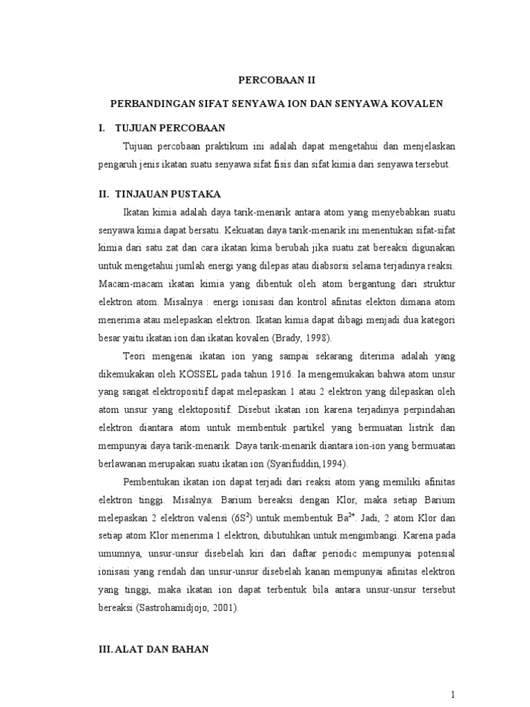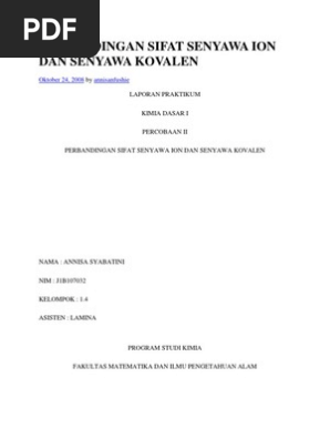 Doc Perbandingan Sifat Senyawa Ion Dan Senyawa Kovalen Insani Fitri Academia Edu