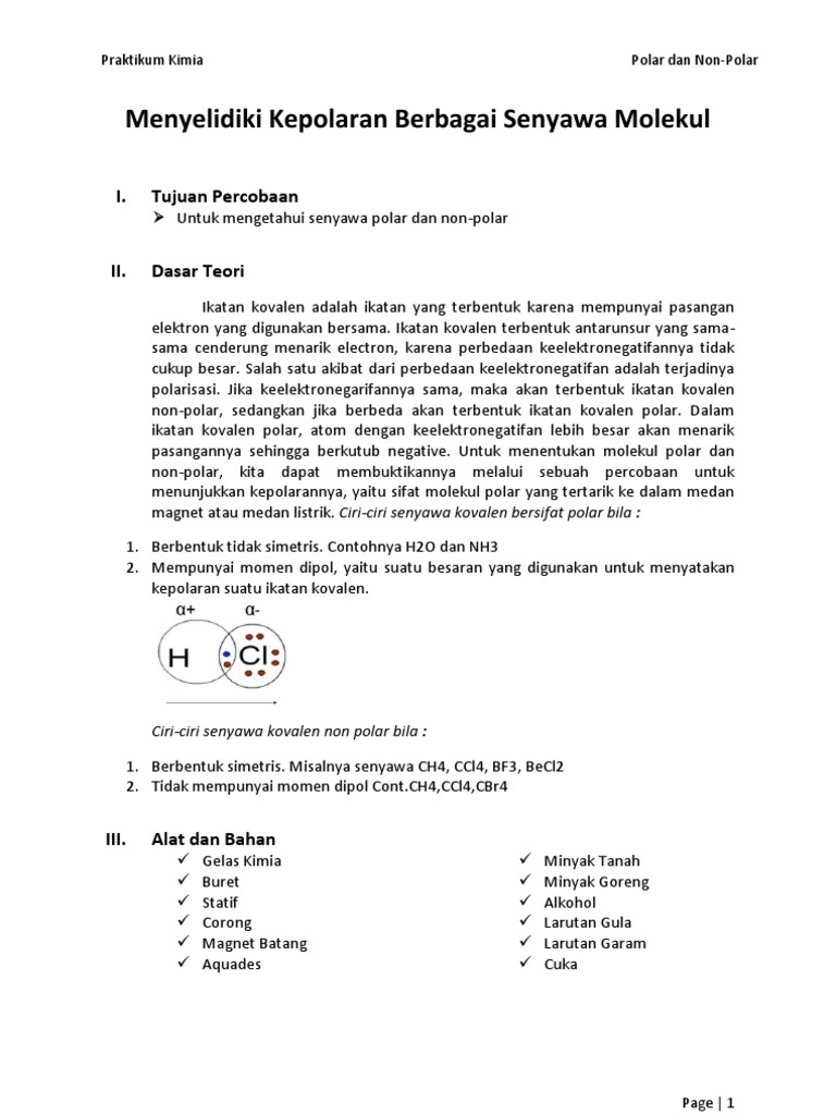 Laporan Praktikum Senyawa Polar Dan Non Polar Pendapat Id