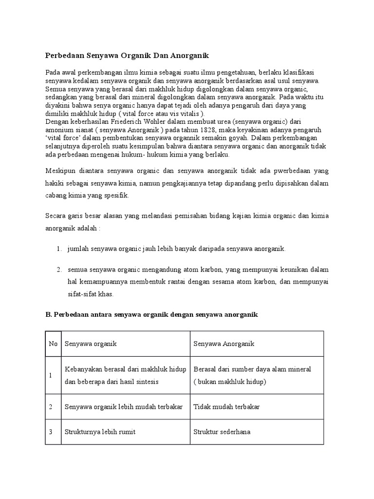 Tuliskan Persamaan Dan Perbedaan Senyawa Kimia Organik Dan Anorganik Brainly Co Id