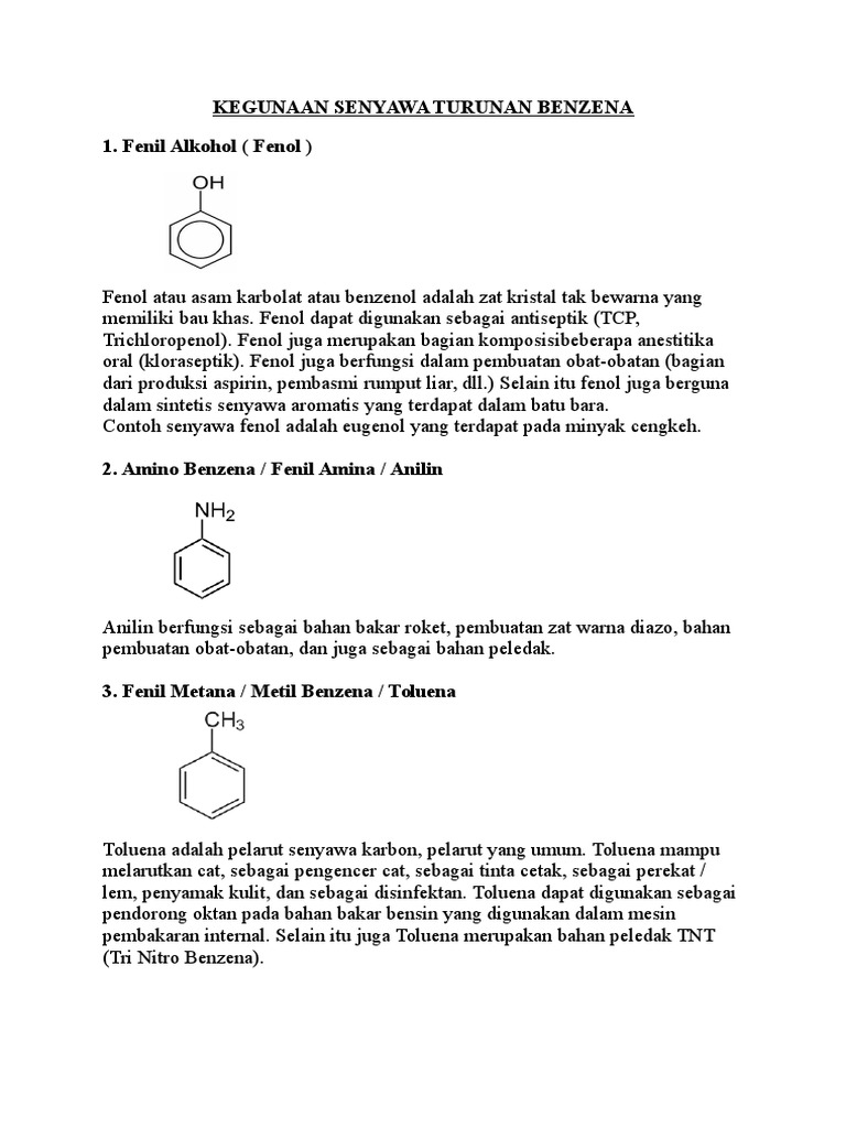 Turunan Benzena Dan Kegunaannya Benzena Dan Turunannya Amaldoft