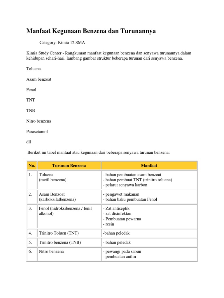 Doc Manfaat Kegunaan Benzena Dan Turunannya Docx Adrianto Shifa Academia Edu