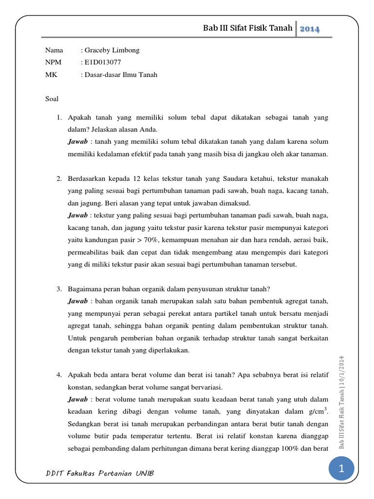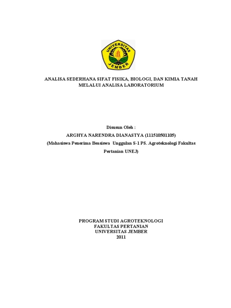 Sifat Fisika Dan Kimia Tanah Laporan Tetap Praktikum Dasar Dasar Agronomi Febri Irawan Teknik Pertanian 05091002006 Unsri