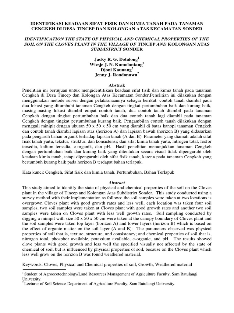 Pdf Beberapa Sifat Fisika Kimia Tanah Yang Berpengaruh Terhadap Model Kecepatan Infiltrasi Pada Tegakan Mahoni Jabon Dan Trembesi Di Kebun Raya Purwodadi