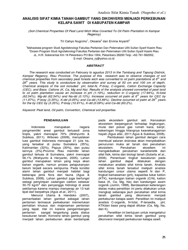 Analisis Sifat Kimia Tanah Gambut Yang Dikonversi Menjadi Perkebunan Kelapa Sawit Di Kabupatan Kampar Universitas Islam Negeri Sultan Syarif Kasim Riau Repository