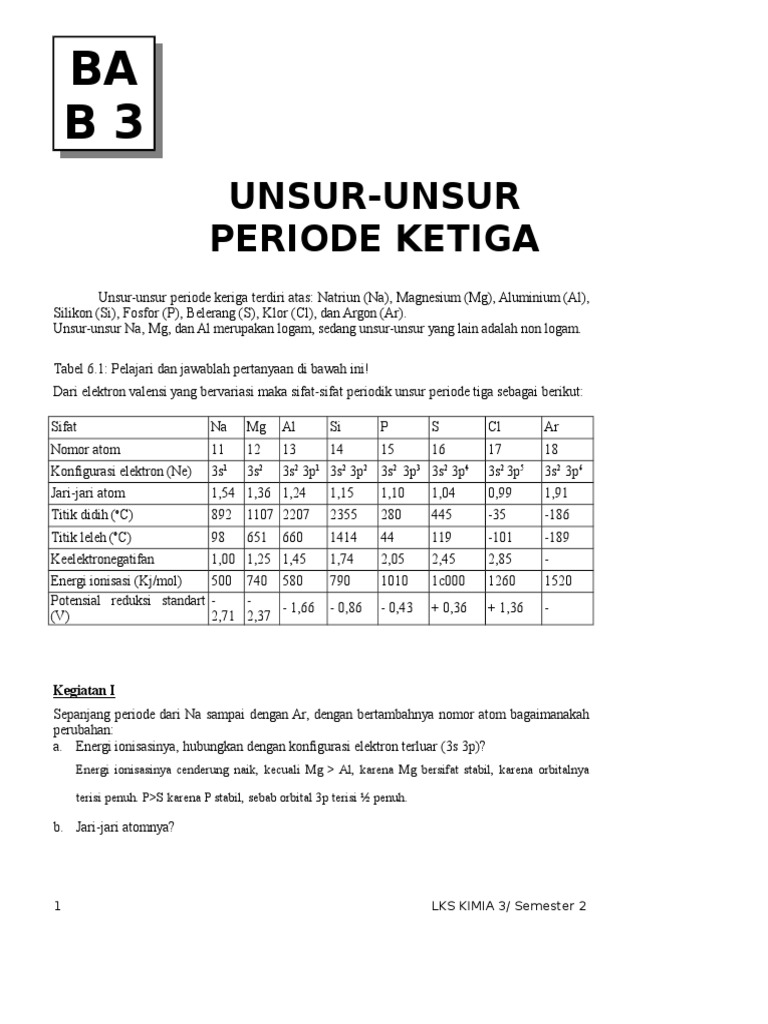 B Sifat Fisis Dan Sifat Kimia Unsur Unsur Gas Mulia Halogen Alkali Alkali Tanah Periode 3 Dan Periode 4 Dewita Triani Putri