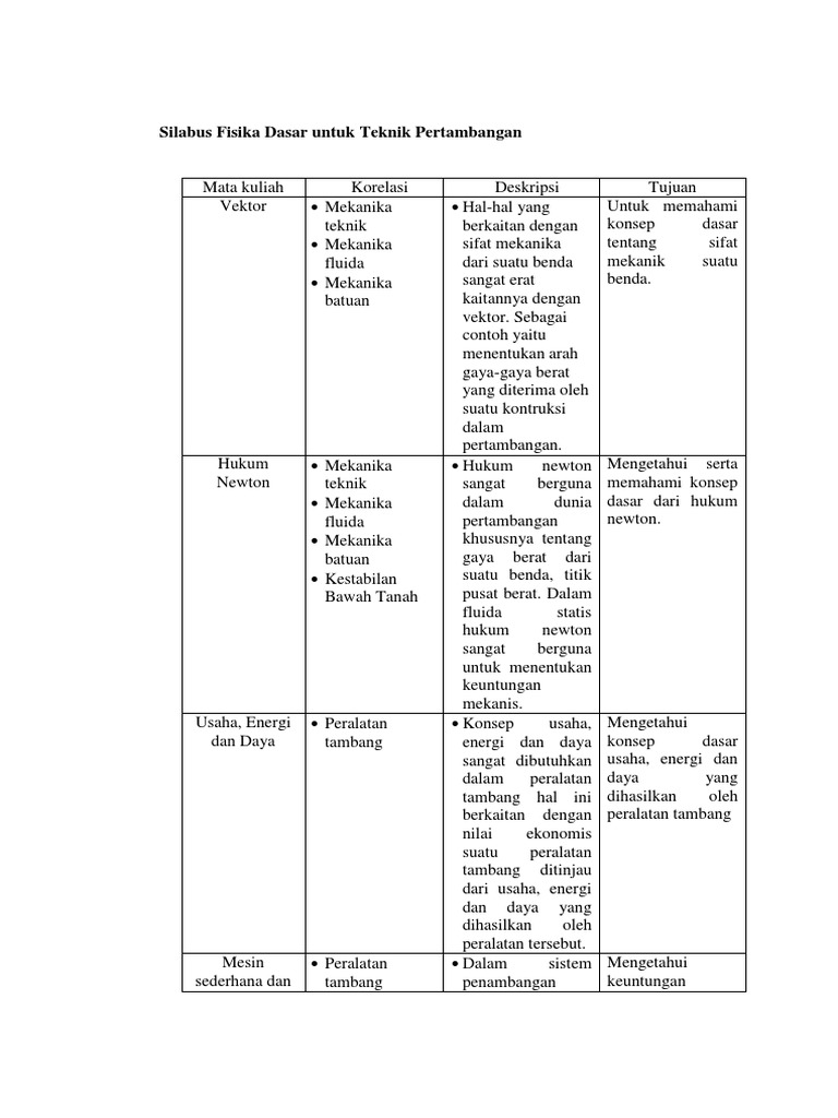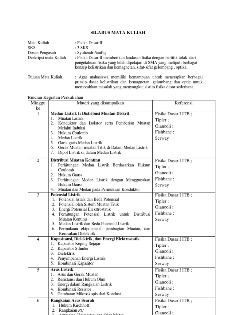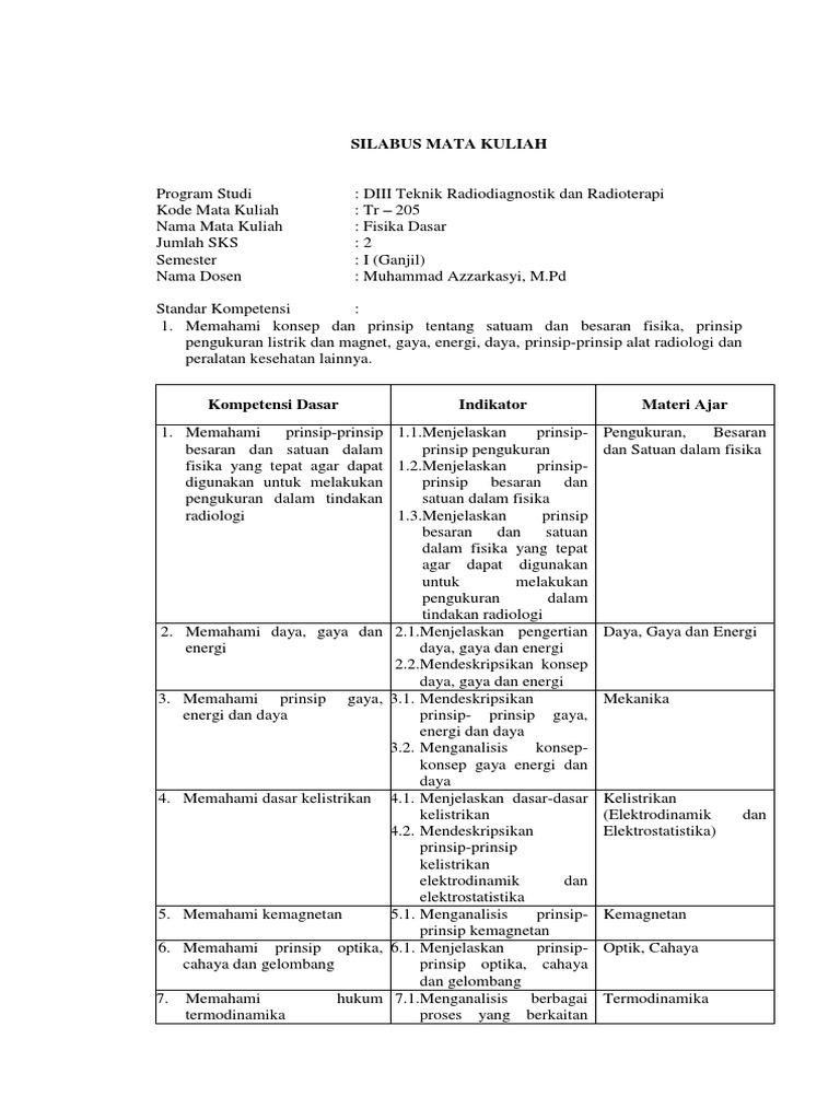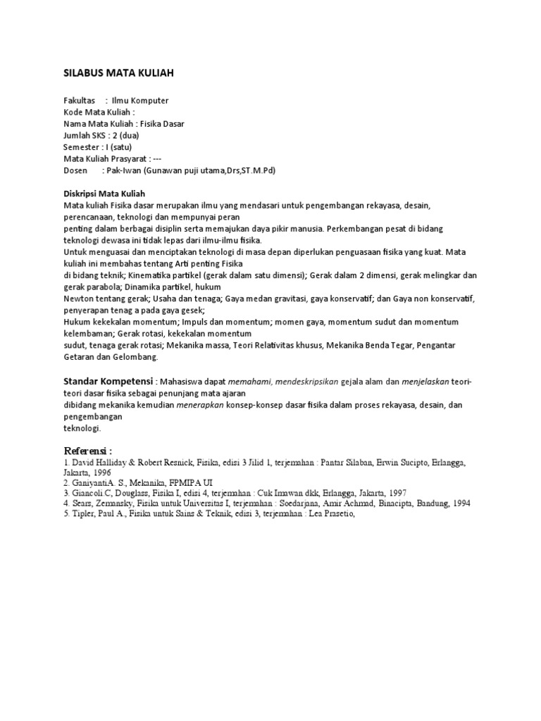 Silabus Fisika Dasar 1 Fakultas Mipa Dan Kesehatan