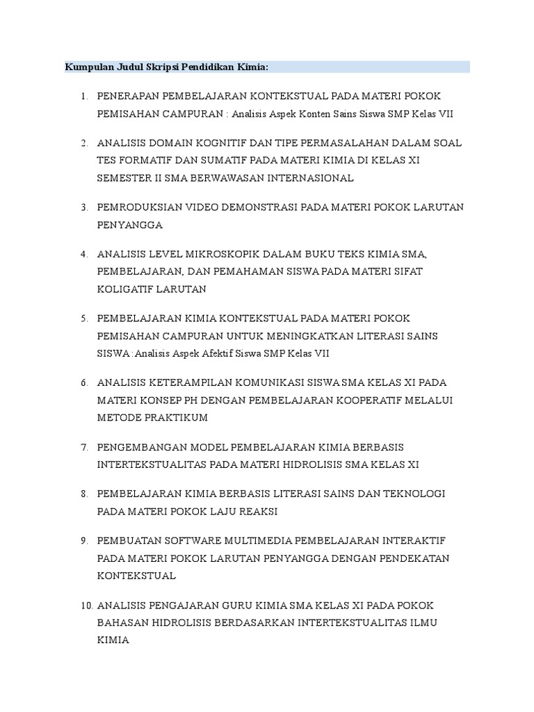 Di bawah ini adalah referensi judul skripsi yang kami ambil dari seluruh universitas di indonesia jika sahabat mahasiswa membutuhkan file lengkap skripsi pendidikan kimia ataupun jurusan pendidikan kimia bisa memesan paket mega skripsi yang berisi 1300 skripsi semua jurusan hanya dengan mengeluarkan uang saku sebesar rp150000 saja. Skripsi thesis uin sunan kalijaga. Menciptakan kegiatan belajar mengajar yang mampu mengembangkan hasil belajar semaksimal mungkin merupakan tugas dan kewajiban guru.