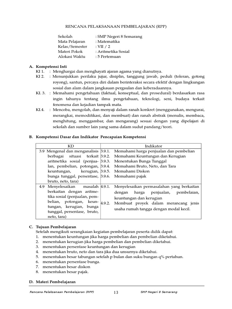 Aritmatika Sosial Kelas Vii Sm 2 Kurikulum Ppt Download