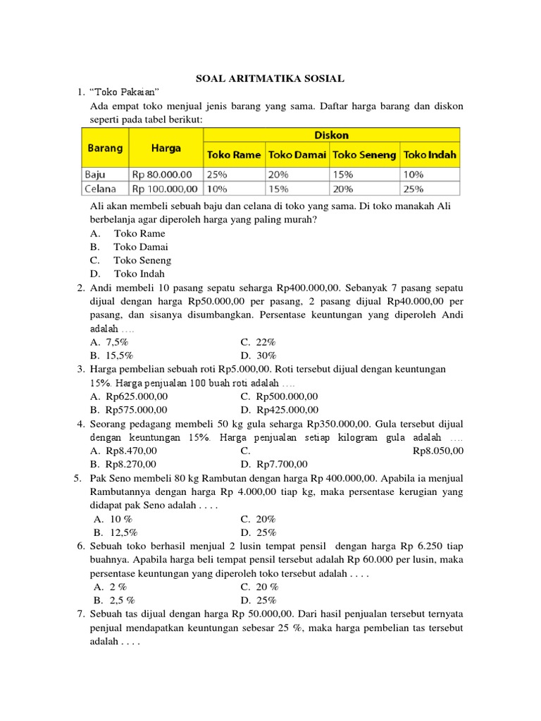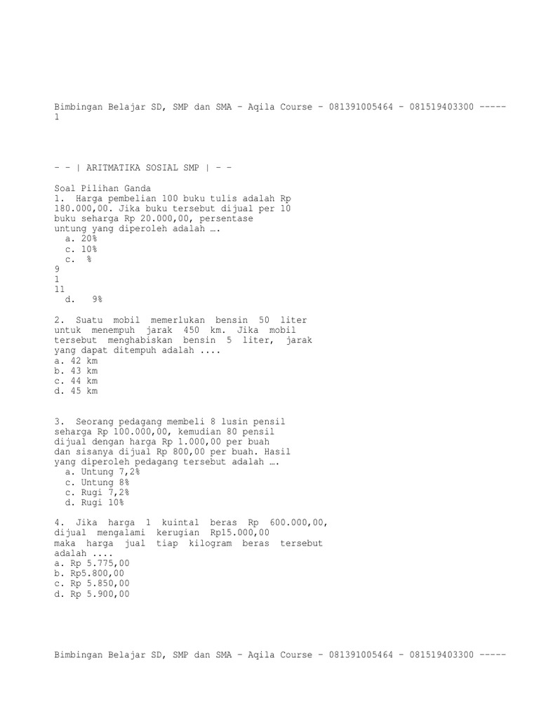 Matematika Smp Kelas 7 Bab Aritmatika Sosial Rangkuman Materi Contoh Soal Dan Pembahasannya Kunci Soal Matematika
