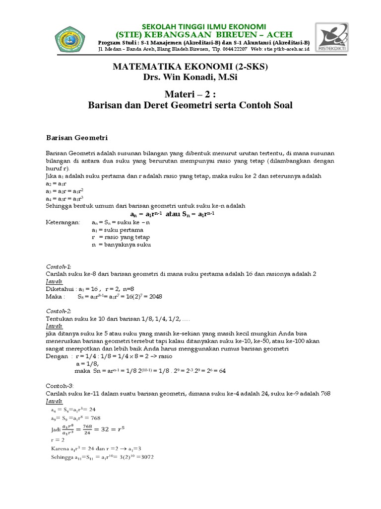 Menemukan Rumus Barisan Dan Deret Geometri Setiap Suku Barisan Geometri Tersebut Dijumlahkan Maka Diperoleh Pdf Document
