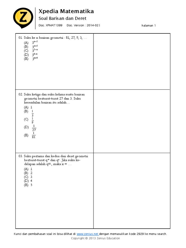 Bank Soal Dan Pembahasan Matematika Dasar Barisan Dan Deret Geometri 25 Defantri Com