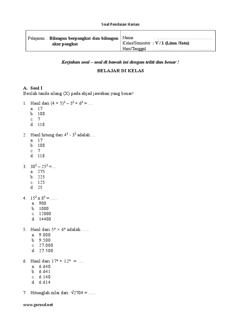Jawaban Soal Bilangan Berpangkat Dan Bentuk Akar Belajar Dari Rumah Tvri Kelas 7 8 9 Smp Hari Ini Tribunnewswiki Com Mobile