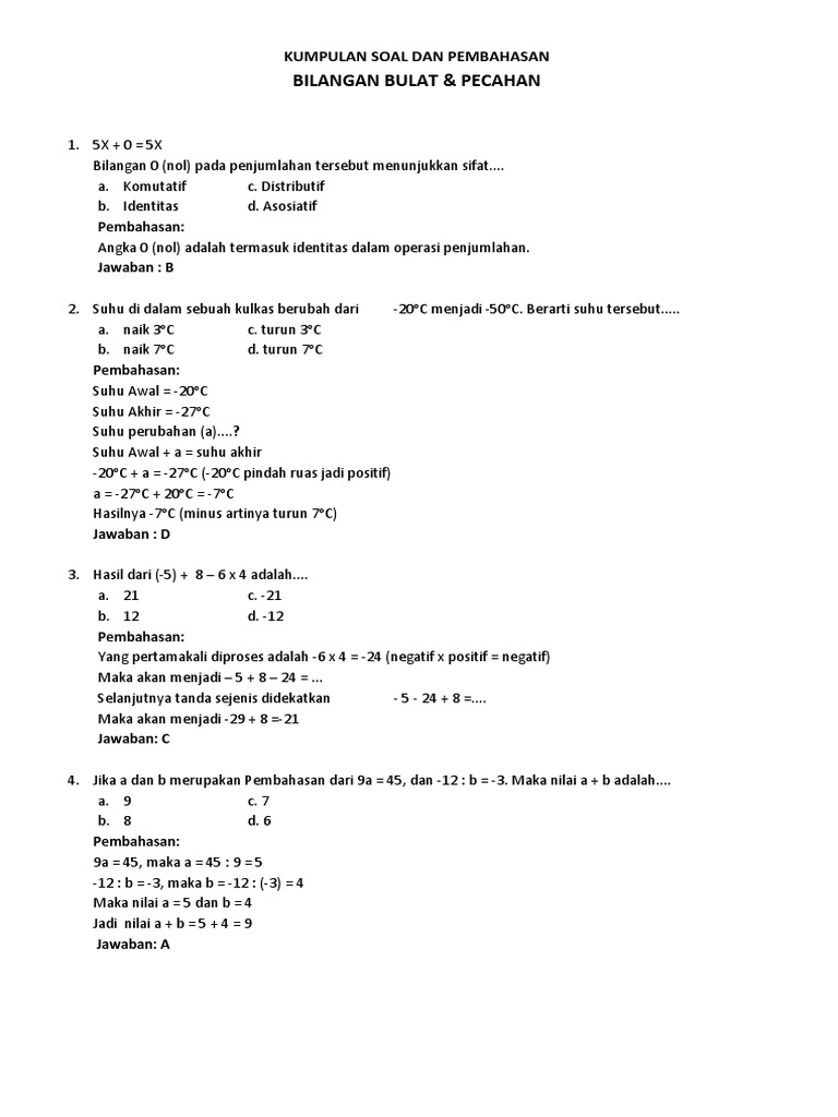 Contoh Soal Operasi Bilangan Bulat Smp Kelas 7 Kumpulan Soal Pelajaran 8