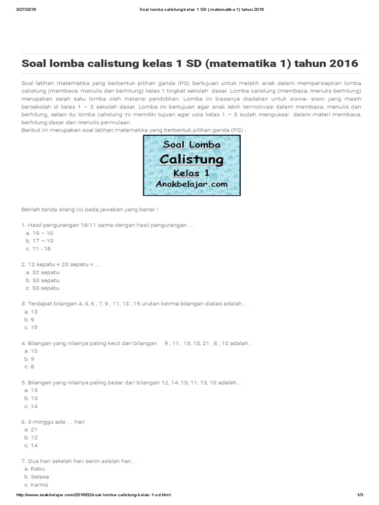 Contoh Soal Calistung Kelas 1 2018 Guru Ilmu Sosial