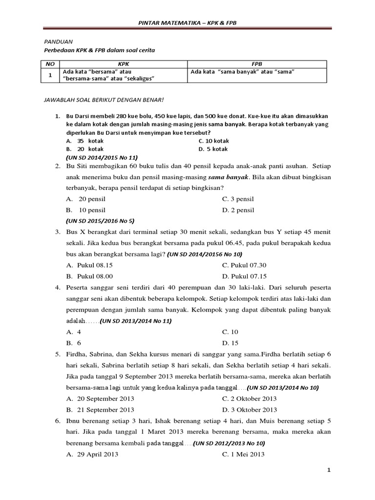 Soal Kpk Dan Fpb Kelas 5 Sd Pdf Soal Ulangan Harian Nama Kelas Sekolah Bab V Lima Kpk Dan Fpb Mtk Jawablah Pertanyaan Berikut Ini Dengan Benar Dan Course Hero
