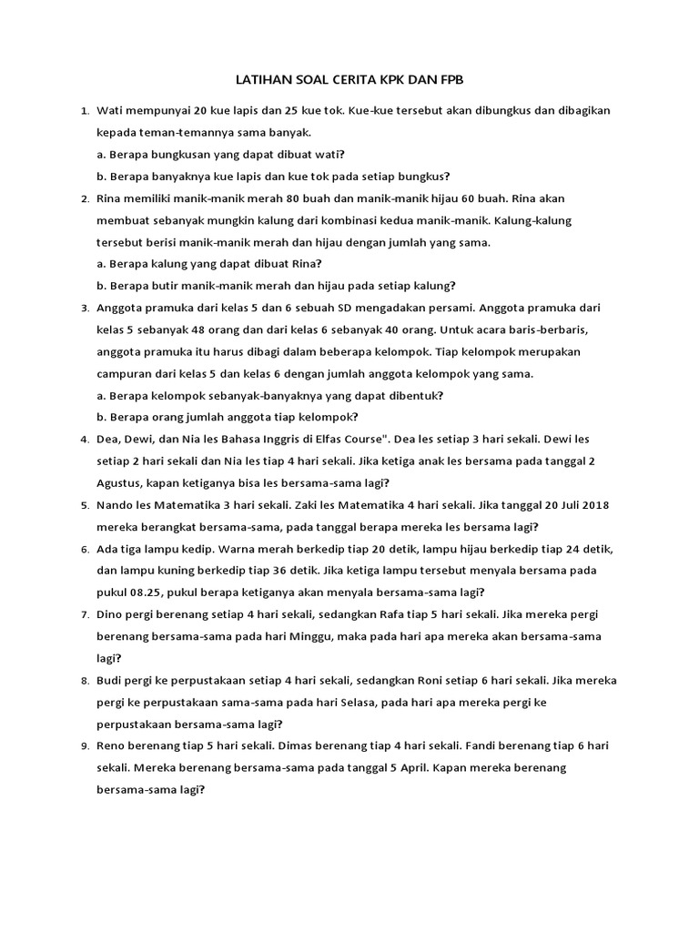 Contoh Soal Fpb Dan Kpk Kumpulan Soal Pelajaran 3