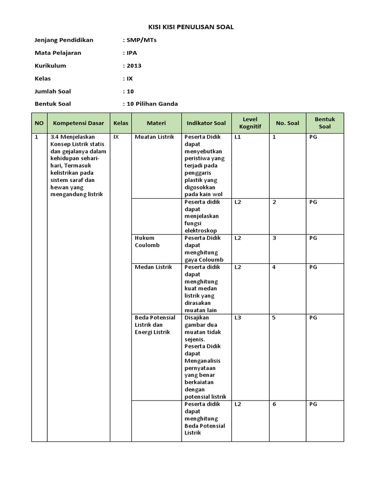 Smp Kelas 9 Fisika Bab 1 Listrik Statislatihan Soal Pdf Free Download