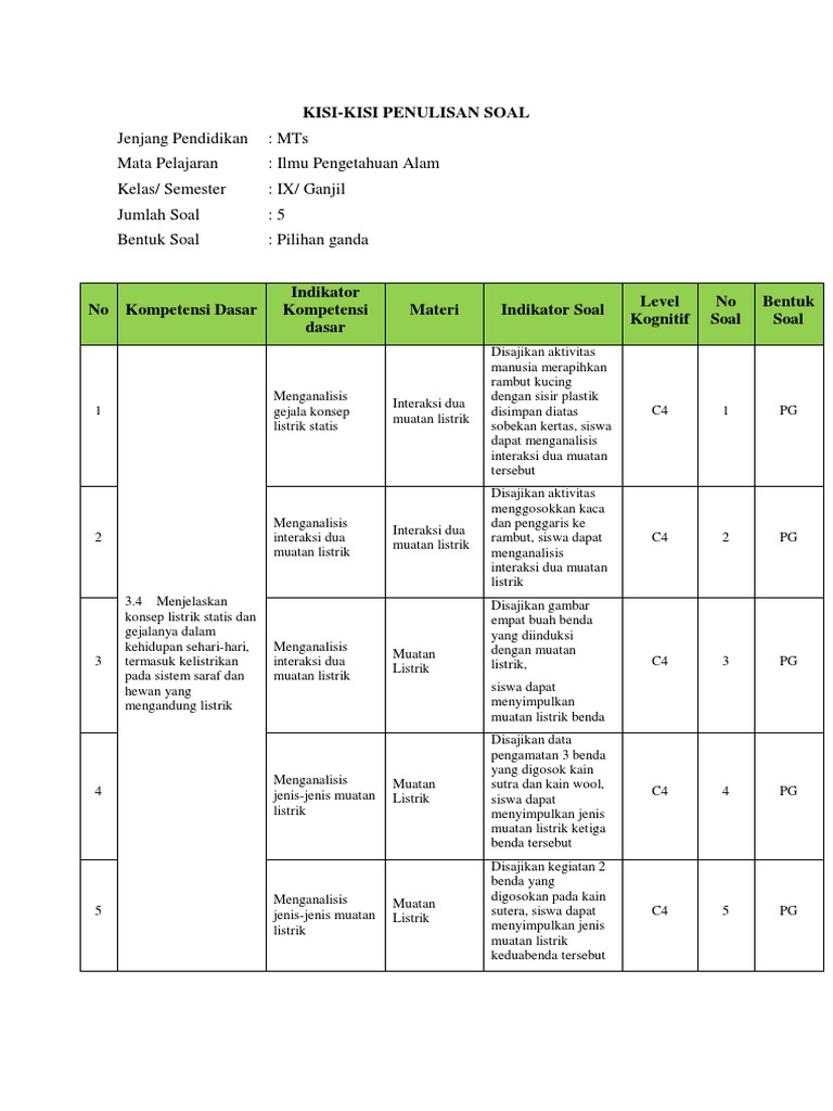 Kisi Kisi Dan Soal