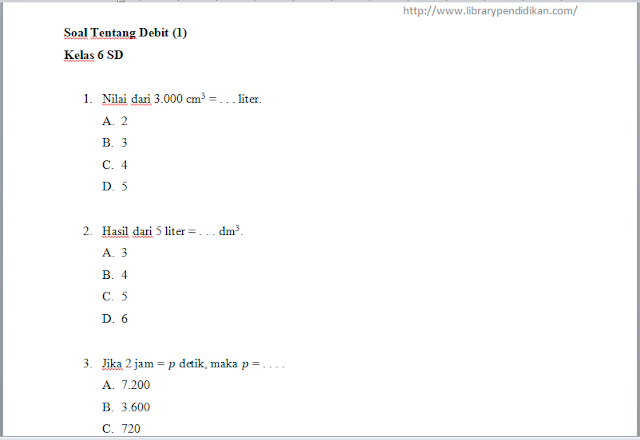 Soal Dan Jawaban Bab 2 Debit Mapel Matematika Kelas 6 Sd Dwi Purwanto