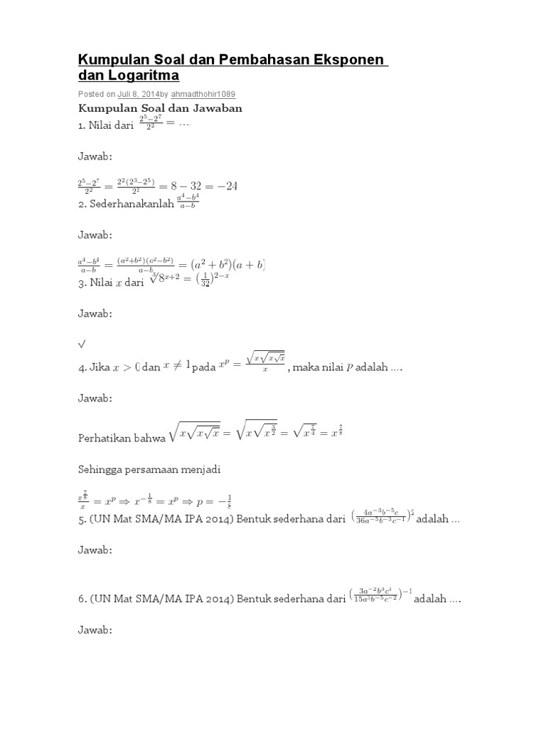 Soal Eksponen Kelas 10 Dan Pembahasannya Yuk Kita Pelajari