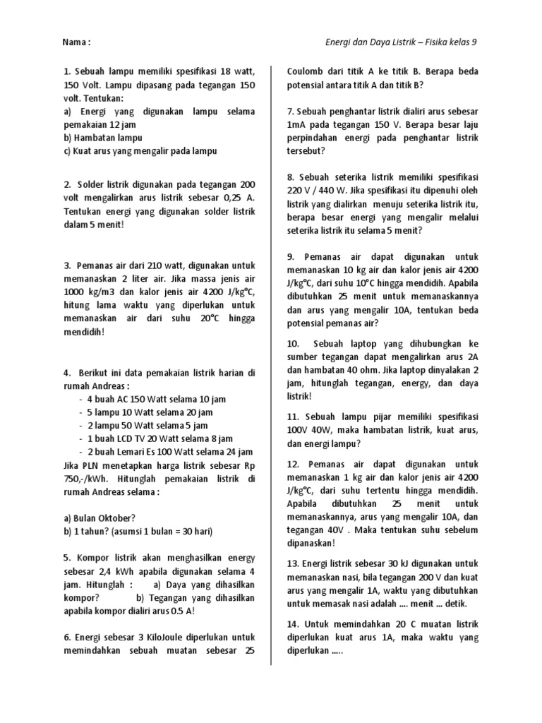 Ulangan Harian 30 Soal Materi Energi Listrik Listrik Statis Listrik Dinamis Dan Daya Listrik Beserta Kunci Jawabannya Ipa Smp