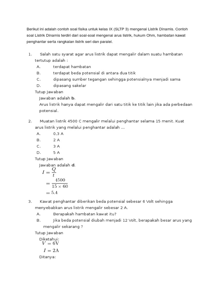 Pengertian Listrik Dinamis Rumus Contoh Soal Dan Jawabannya Pelajaran Sekolah Online