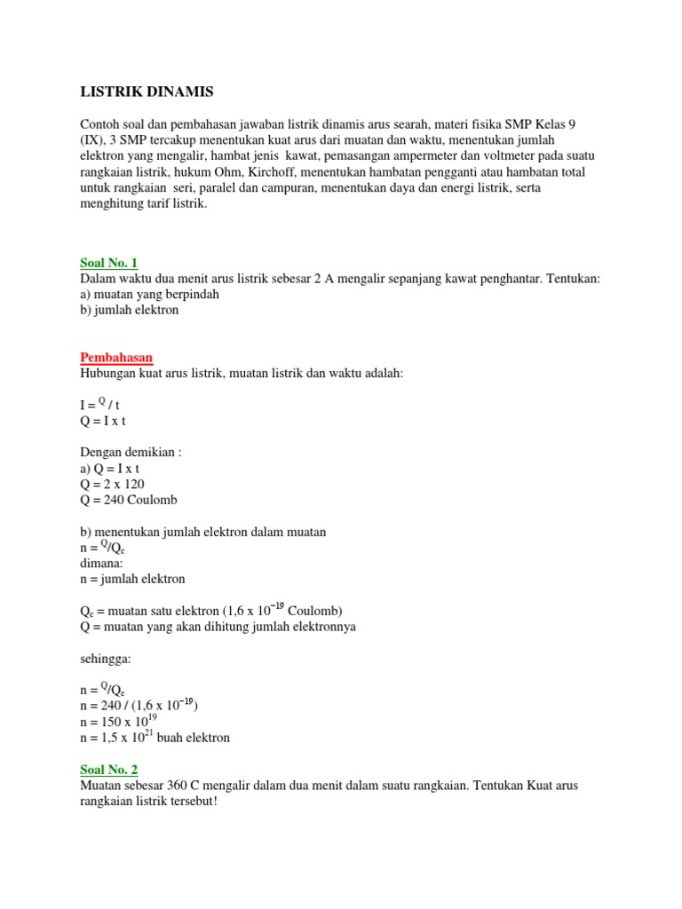 Kumpulan Soal Dan Pembahasan Fisika Listrik Dinamis Listrik Arus Searah Guru Baru Indonesia