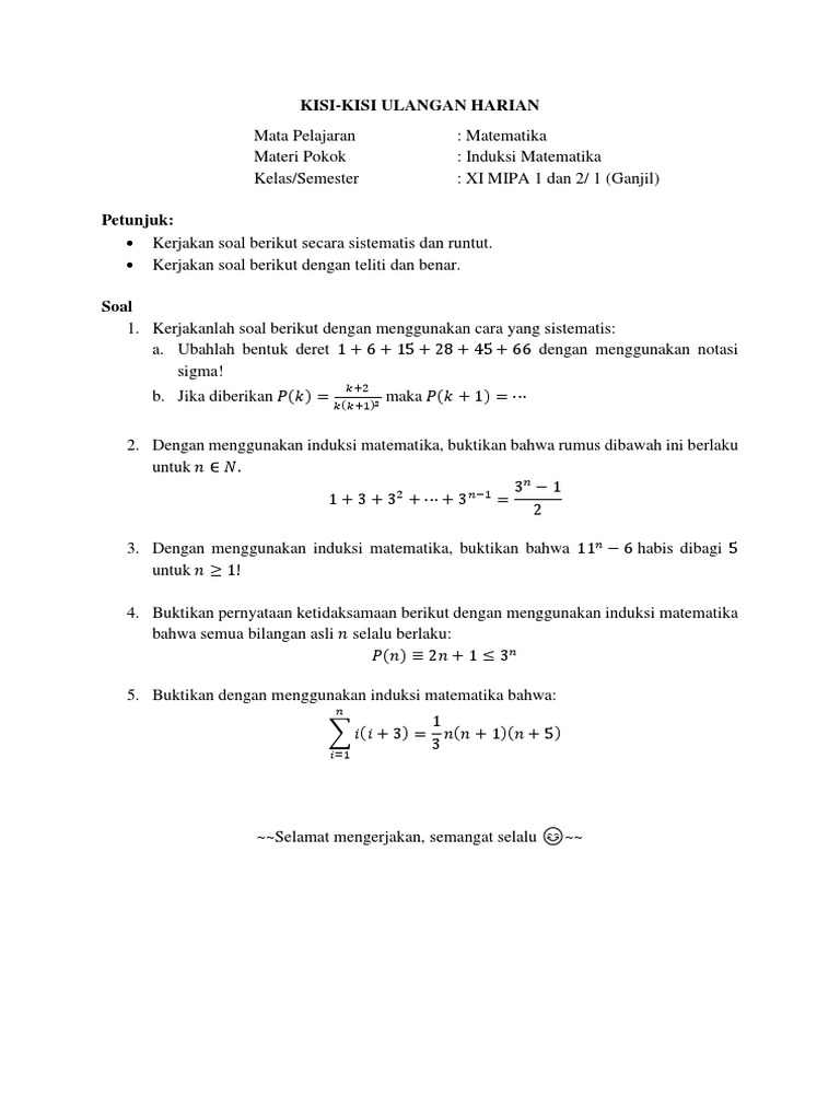 Contoh Soal Pertidaksamaan Induksi Matematika Kelas 11 Kumpulan Soal Pelajaran 1