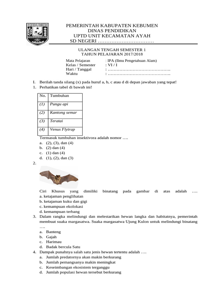 Kumpulan Latihan Soal Dan Kunci Jawaban Usm Ipa Kelas 6 Sd Mi Tahun 2017 Library Pendidikan