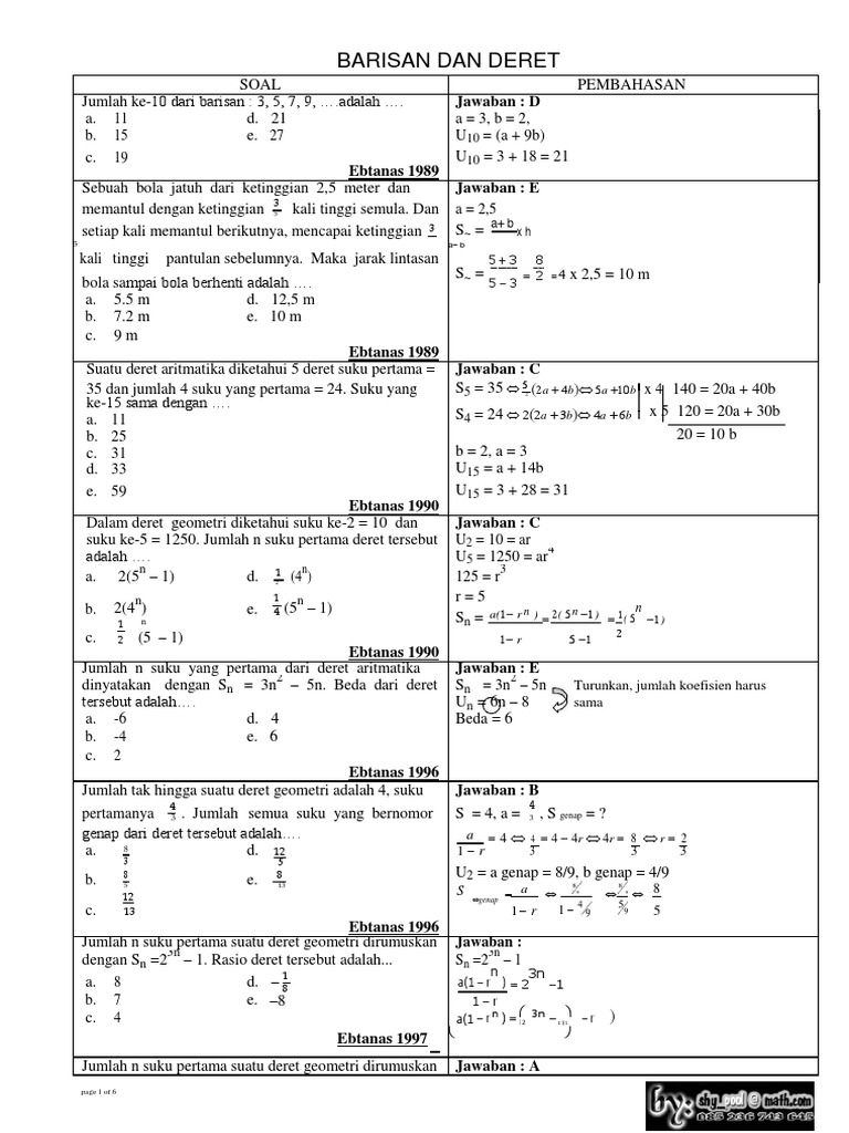 Rumus Barisan Dan Deret Aritmatika Dan Geometri Serta Pembahasan Dan Perbedaannya Jogjamatematika