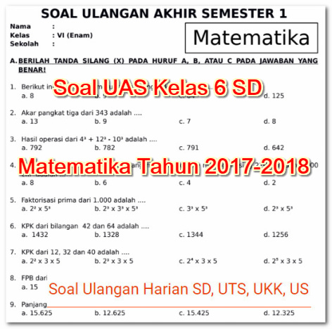 Soal Matematika Kelas 6 Sd Semester I Ulangan Bab 4 Mengolah Data I