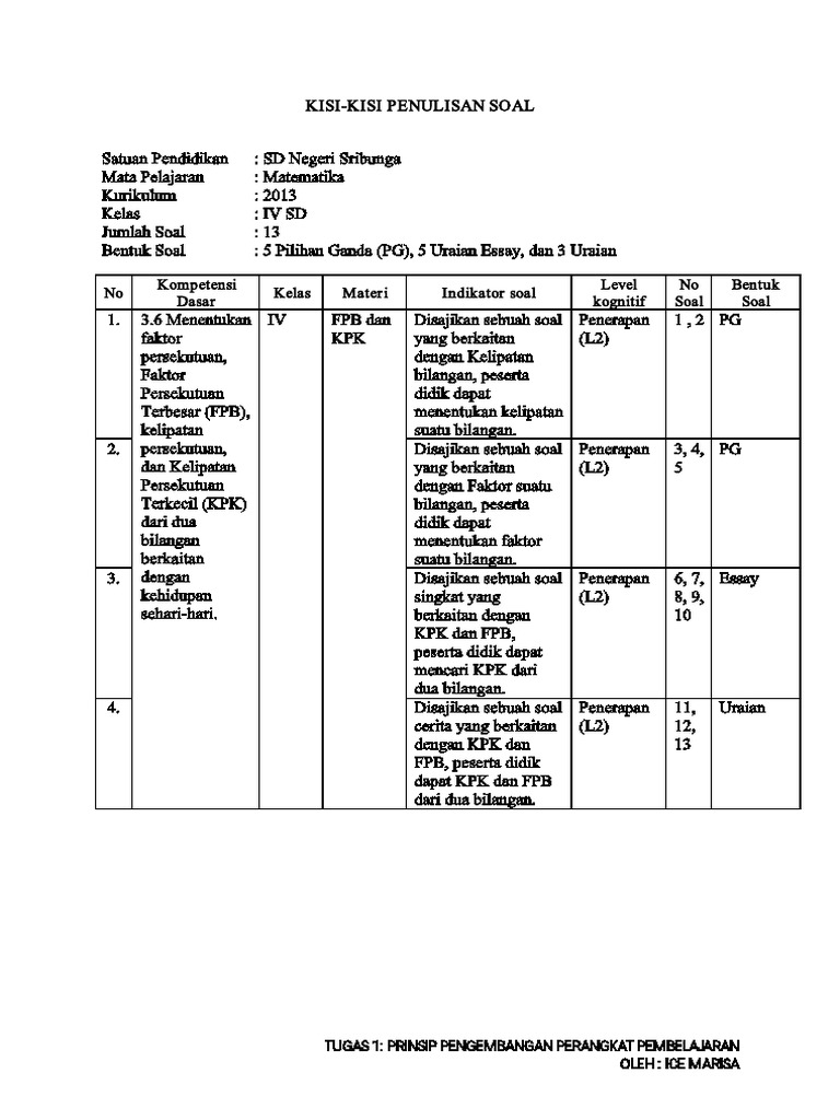Soal Matematika Kelas 4 Sd Bab 4 Kpk Dan Fpb Dan Kunci Jawaban Bimbel Brilian