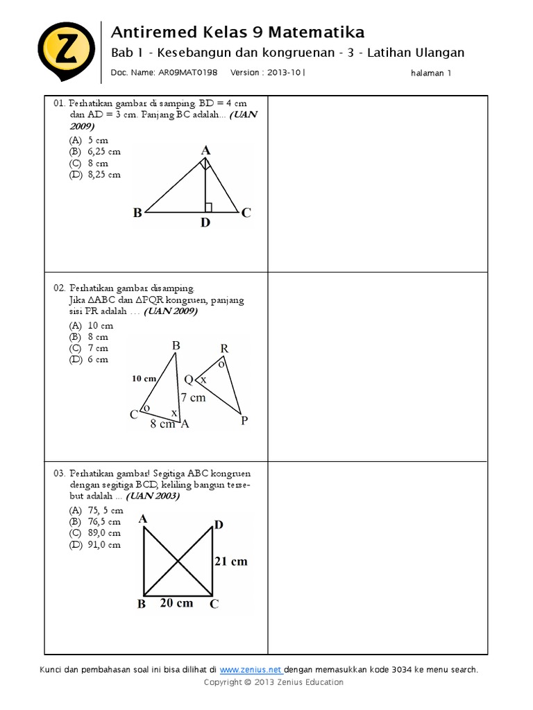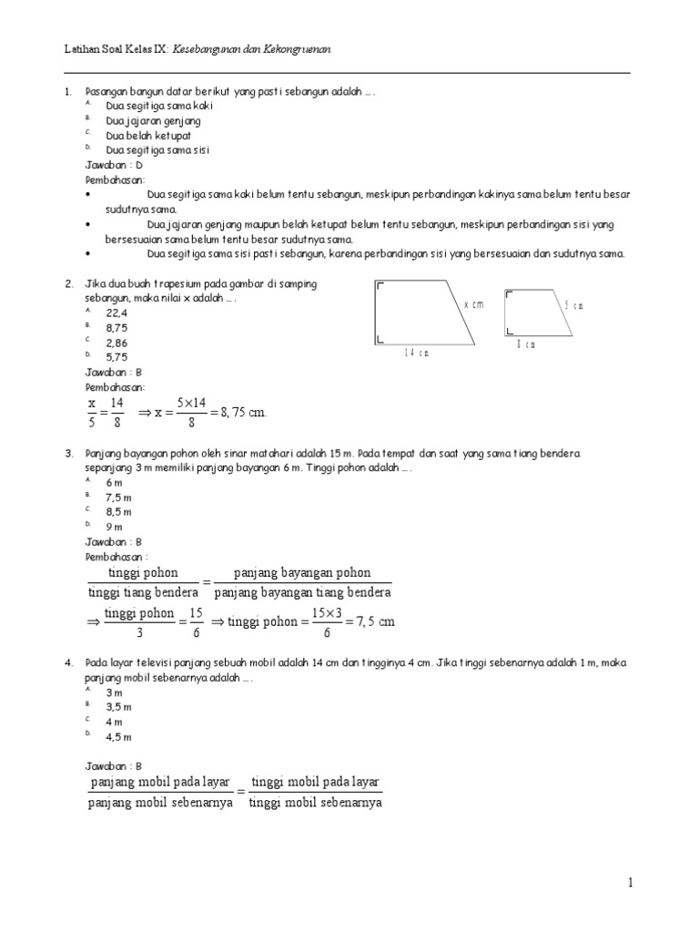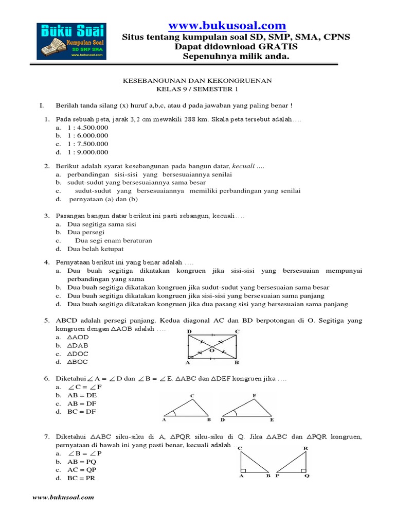 Soal Matematika Kelas 9 Semester 1 Bab Kesebangunan Dan Kongruensi Please Jawab Besok Brainly Co Id