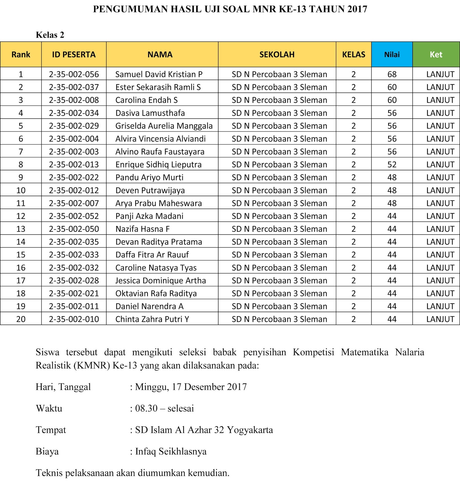 Pengumuman Babak Penyisihan Kmnr 15 Ahlan Wasahlan Fi Madrasah Mi Murni Sunan Drajat Lamongan