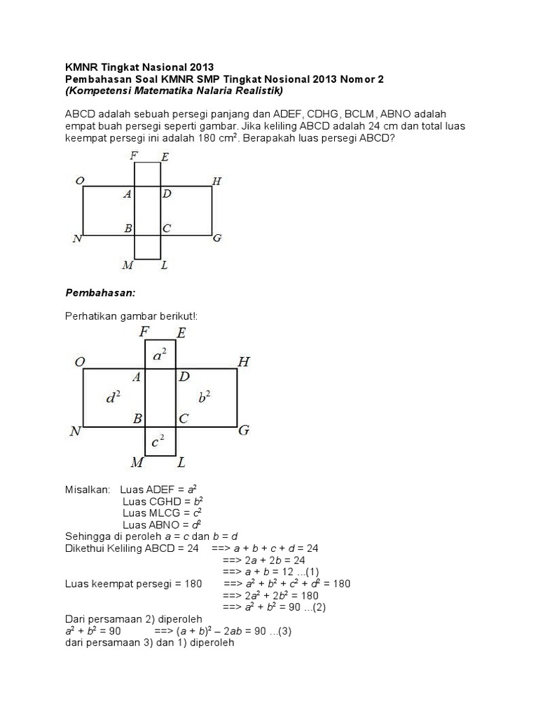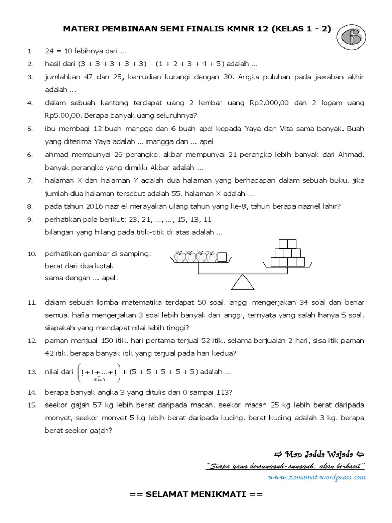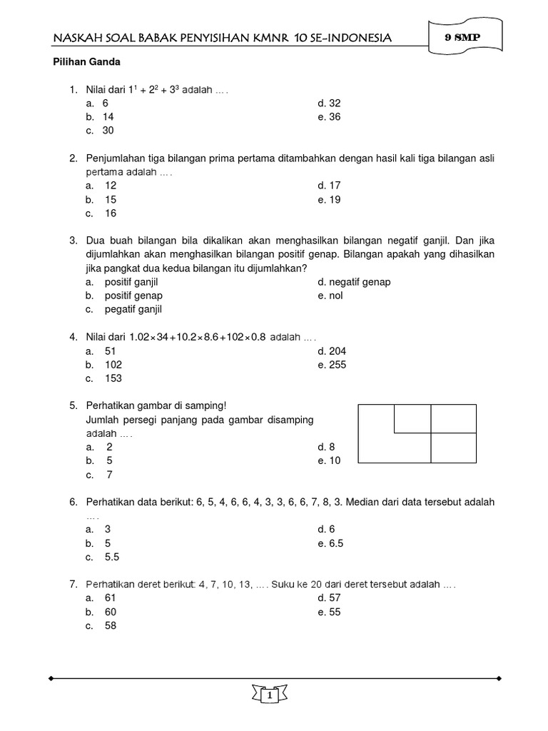 Pembahasan Soal Uji Coba Kmnr 12 Kelas 7 8 Smp 4 1 Bagian Sisa 3 Bagian Dengan Menggunakan Metode Pdf Document