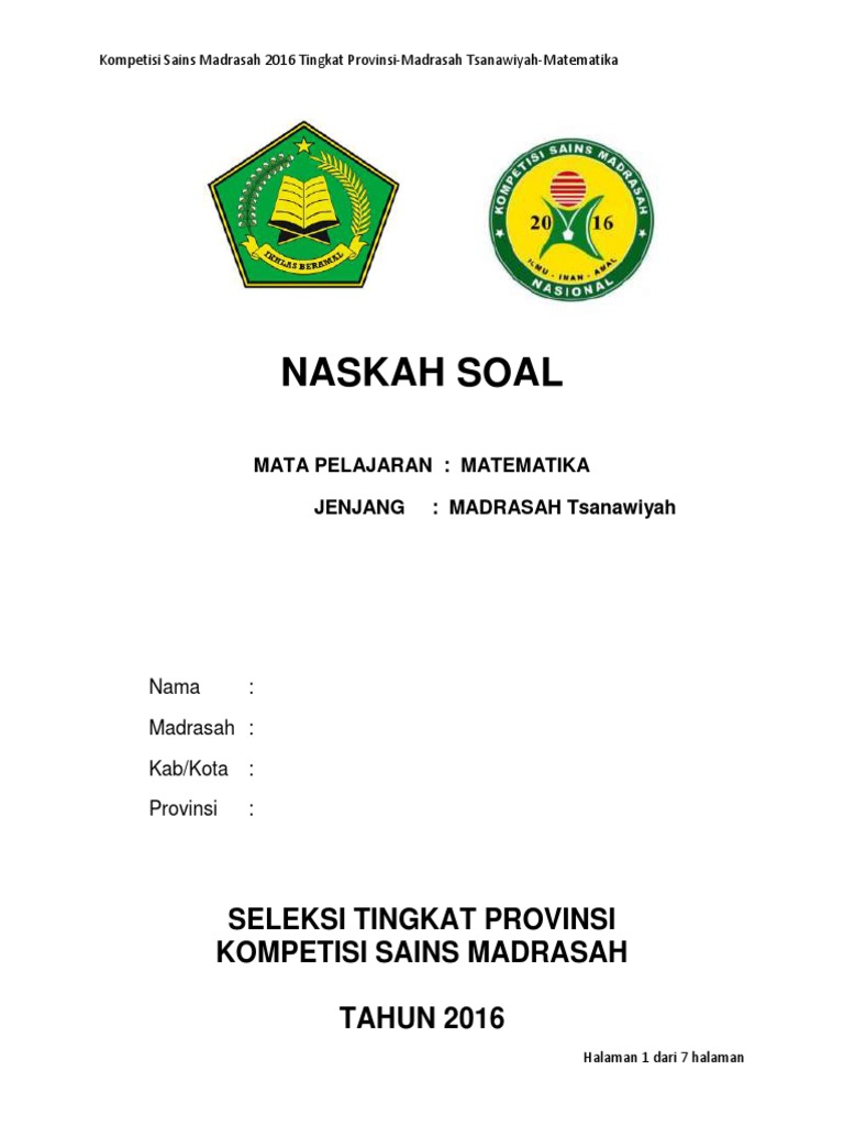 Soal Ksm 2018 Tingkat Provinsi Terintegrasi Mi Mts Ma Semua Mapel Catatan Matematika