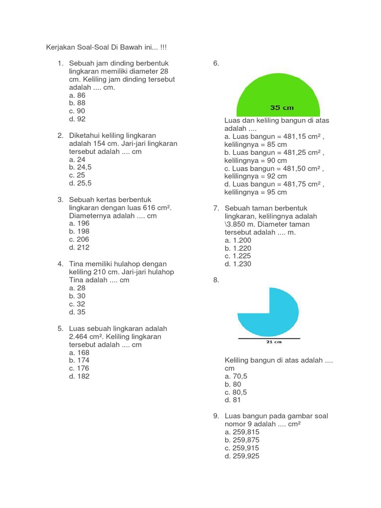 Luas Dan Keliling Bangun Datar 1 Soal Kelas 6 Sd 1 Rumus Luas Persegi Panjang Adalah A B C D Pdf Free Download