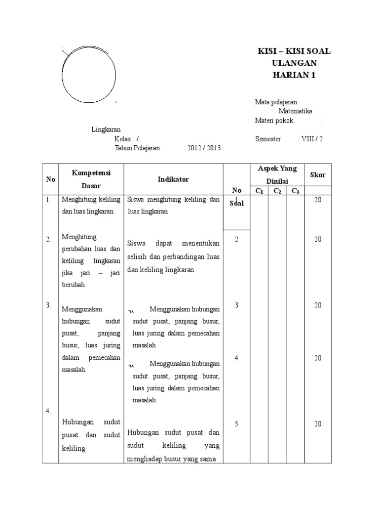 Soal Dan Pembahasan Ulangan Harian Lingkaran Kelas Viii Smp Gkst Ensa Smp Kristen Gkst Ensa