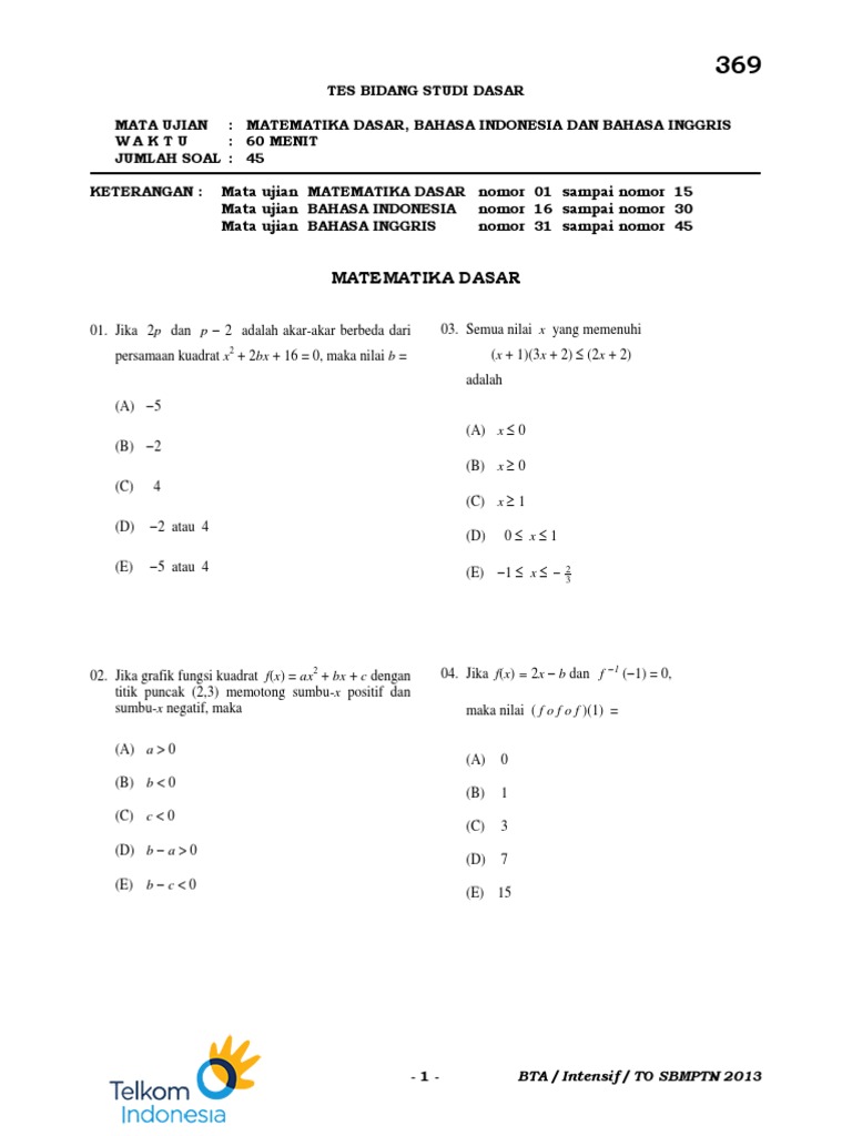 Latihan Soal Matematika Dasar Guru Ilmu Sosial