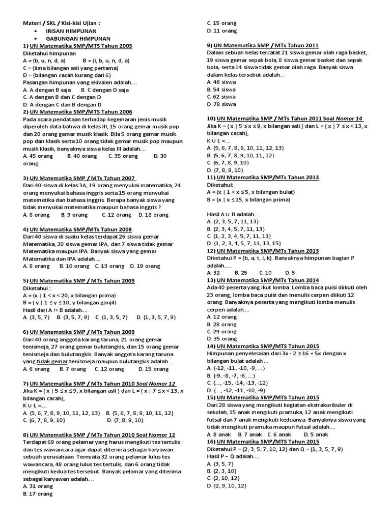 Soal Latihan Pat Ukk Matematika Smp Kelas 7 Kurikulum 2013 Pendidikan Kewarganegaraan Pendidikan Kewarganegaraan