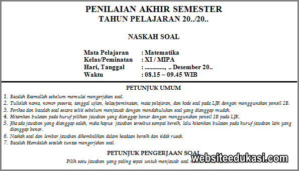 Contoh Soal Ujian Matematika Kelas 11 Semester 1 Dan Jawaban